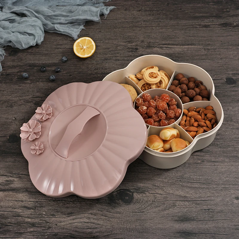 Hot Sale Divided Storage Box Nut Box Snack Tray With Handgrip Combination Box Holiday Gift Snack Organizer