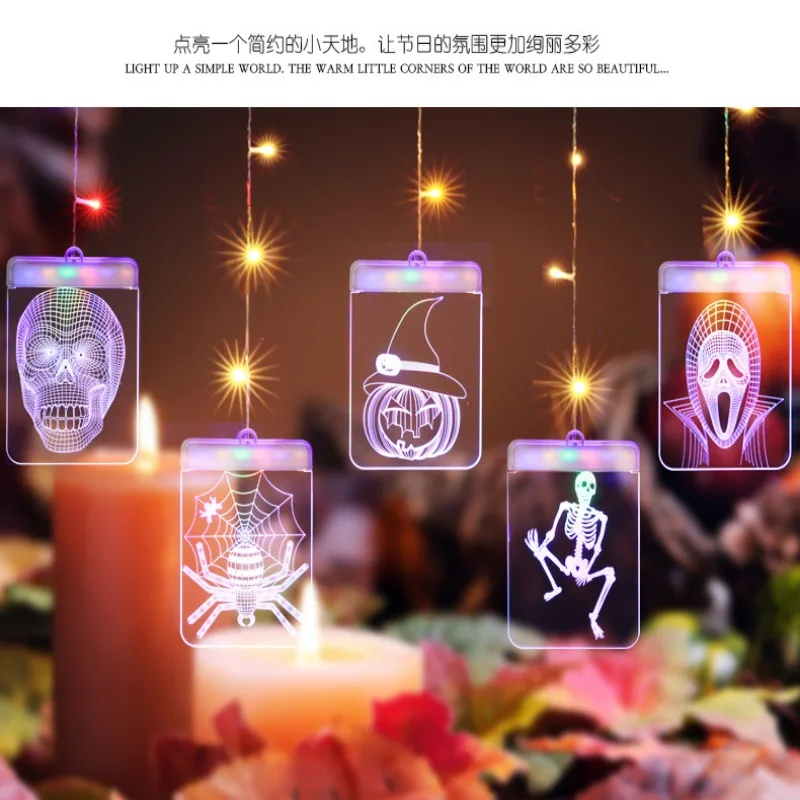 2019 USB Powered Halloween 3D Acrylic Sign Light Holiday Window Ceiling Wall Hanging Fairy Lighting